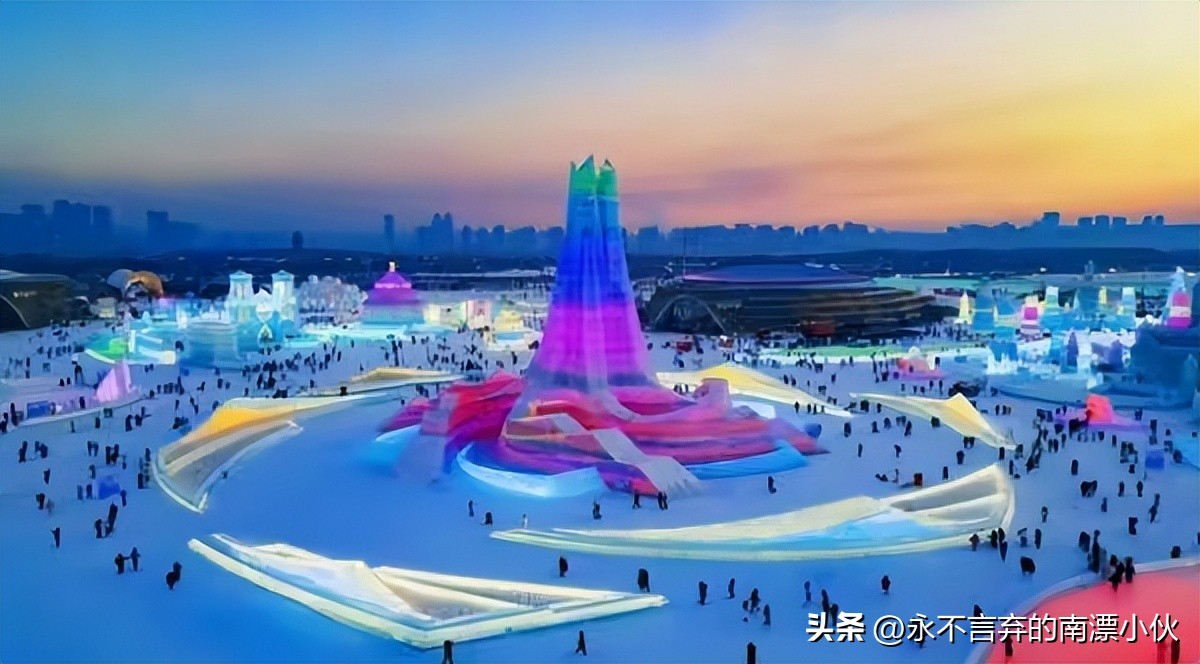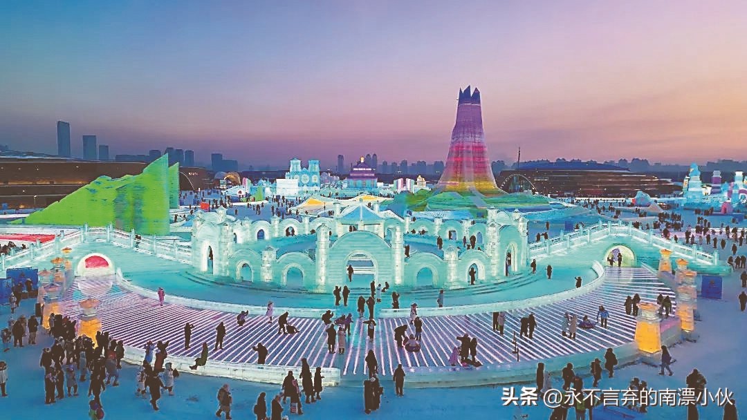 81万平方米的哈尔滨冰雪大世界,围绕"冰雪文化之都"主题,打造了上千个冰雪景观,特别是世界独一无二的"冰雪之冠"主塔,高43米,相当于14层楼,采用工艺复杂的体块旋转盘升结构建造而成。充分展现了咱们中国雕塑工艺、雕塑工具的先进性!其中最让人惊叹的还是这些 “跨年冰块”!这些竟然是提前一年储存下来的10万立方米的冰。利用传统储冰与现代多层保温技术相结合的方式,即使在气温超过30℃的盛夏,也能确保冰体不会融化!