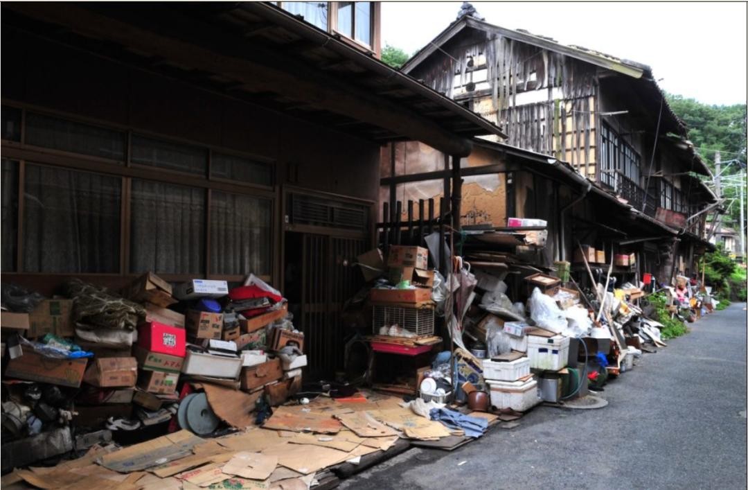 与此同时,随着城镇和农村留守的老年居民搬到养老院或死亡,他们的房子将传给他们的继承人。然而现在越来越多地居住在日本主要城市的年轻一代,除了缴纳所需的财产税外,通常对继承或维护家庭在农村深处的祖屋没有兴趣。在很多情况下,官方亦无法找到或确定适当的继承人,从而使房屋的命运处于不确定状态。