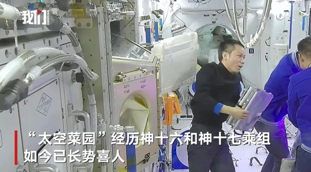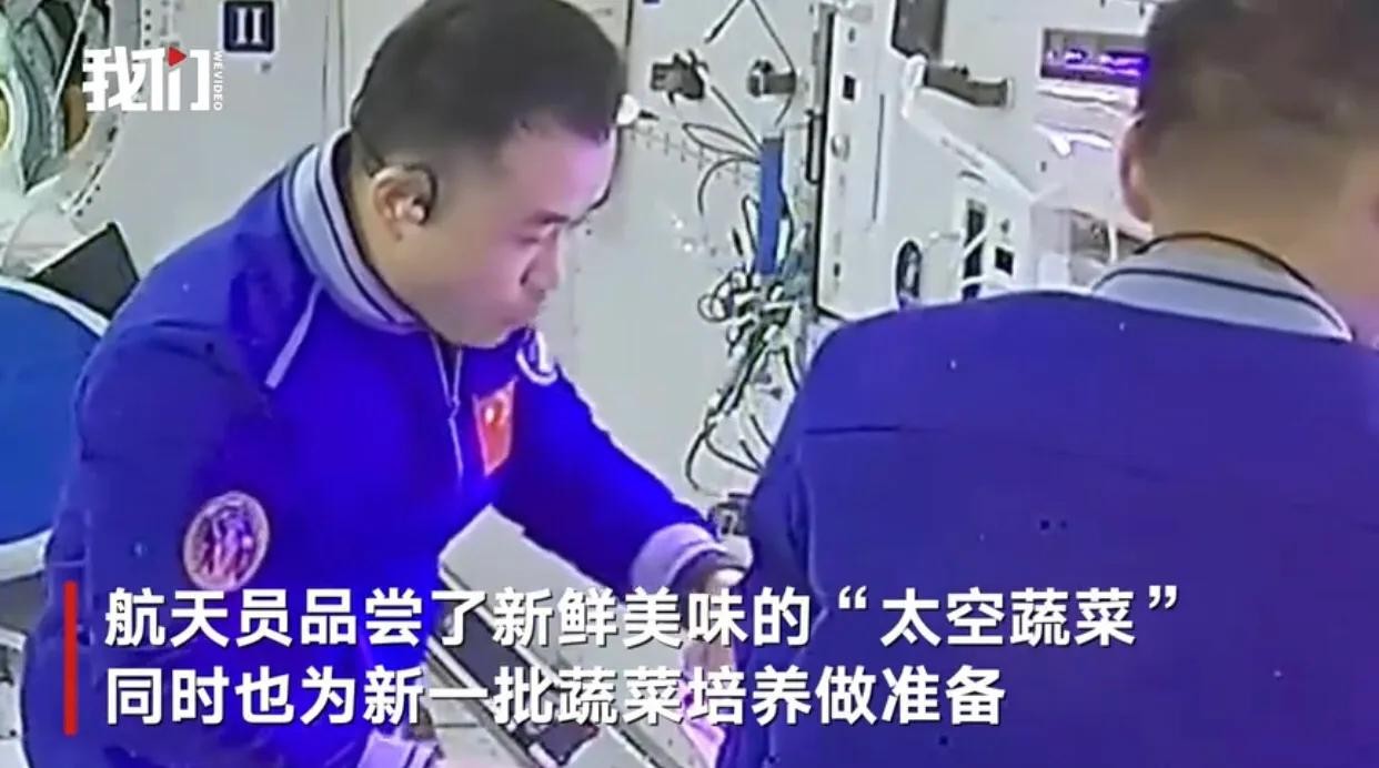 神十七乘组太空菜园欣赏:蔬菜长势喜人,航天员边摘边吃