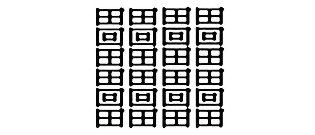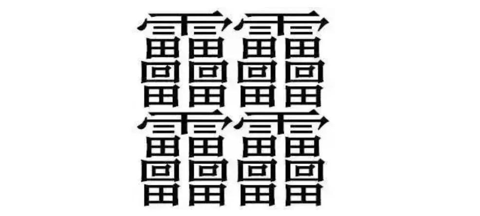 2、这个字也很奇怪,它发两个音hou you,也是“雷”的古字。它由16个田字和8个回字组成,共有128画。