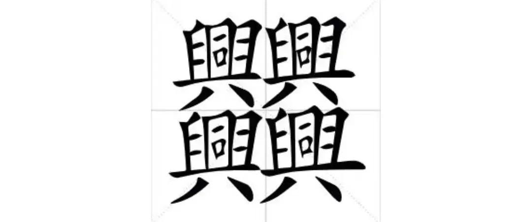 7、这个字由四个繁体的「兴」组成,,它的读音为zhèng,共64画。《五音篇海》音政,《中文大辞典》有收录。具体含义字典里没有解释。