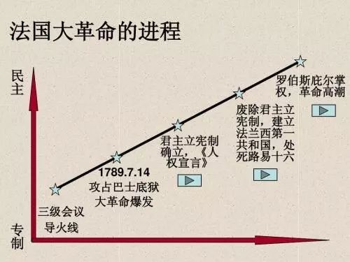 对国内:法国大革命是一次广泛而深刻的政治革命和社会革命,从巴黎人民攻占巴士底狱到热月政变,法国大革命经历了五年的历程。它彻底地结束了法国一千多年的君主专制制度,传播了自由民主平等的思想。