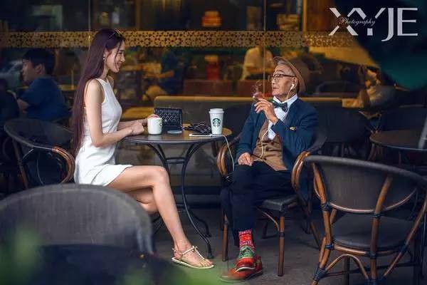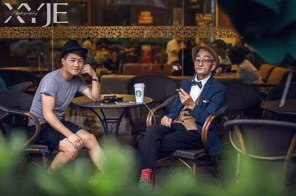 比如这样:小野变成爷爷年轻的样子,在咖啡厅优雅地邂逅,在海边听音乐吹海风,时尚优雅地踱步于街头.....不过爷爷的那种帅可是模仿不来的!