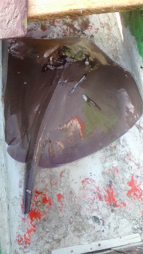 晨练,06:43完成。见艾曼纽船回程,大声问有没有红鱼,艾曼纽站在船上说有。帮忙推船上岸,见船舱内有一只约二十斤重的鳐鱼,安瑙克问我喜欢这条鱼不?太大了不好收拾,所以干脆说:我不喜欢这条鱼。