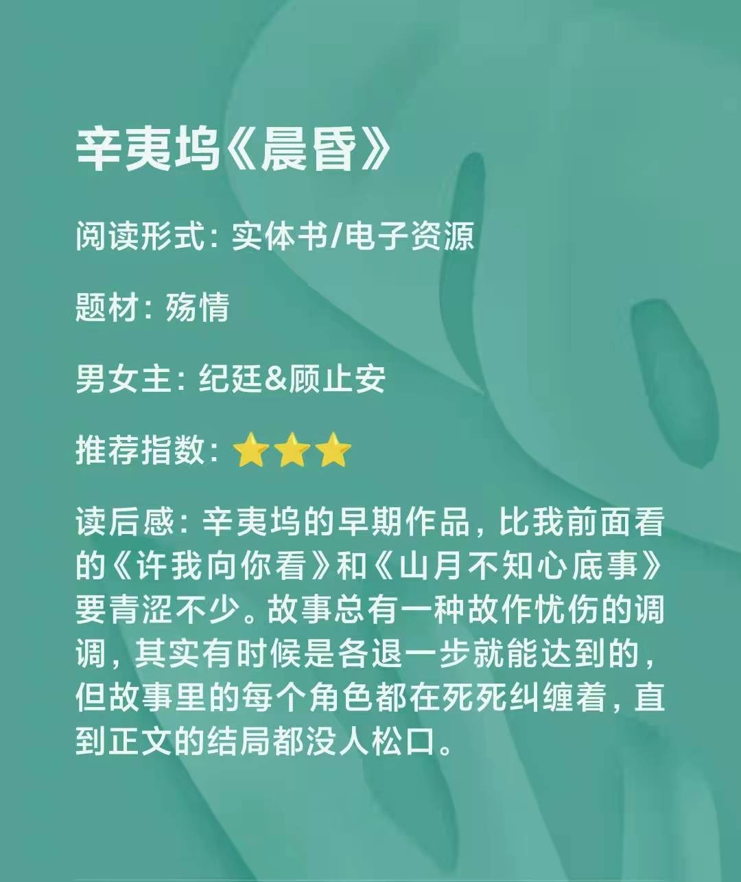 辛夷坞的其他作品推文:大女主文《山月不知心底事》:辛夷坞作品,我没勇气再看第二遍 高干文《许我向你看》:辛夷坞作品,又虐又心疼