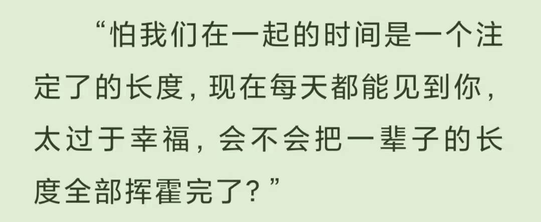 后来纪延在别人口中意外得知止安的下落,他毅然选择到远离家乡的城市实习,也如愿找到了止安。只是幸福过于短暂,纪延依旧没抓住不信幸福的止安。而后又过了几年,止安已经成为新锐画家,等待蛰伏许久纪延也终于摆脱父母的牵制,踏上了找寻止安的路上,只是一切远远没那么简单。止怡的孱弱,父母的期盼,止安的决绝,一直在围绕着纪延。在番外里,纪延背离了一家人和止安在一起,值得或幸福与否,只有他们自己知晓。