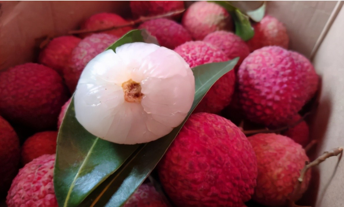 剥开后果肉呈乳白色的鸡嘴荔枝