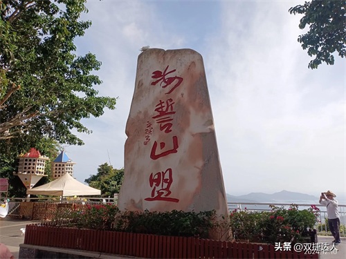 经过15分钟的运行,终于到了顶峰,下了索道车,首先映入眼帘的是一块巨石,矗立在最高峰,上边有四个大字“海誓山盟”,这就是凤凰岭景区为什么又叫海誓山盟景区的原因。
