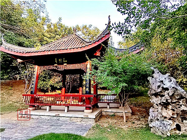 武汉·中国园因武汉市与法国波尔多市文化交流而建,布局精巧,由知音亭、镂空编钟照壁和松、竹、梅等园林植物组成,开敞式景观布局和中国传统园林手法浑然天成。