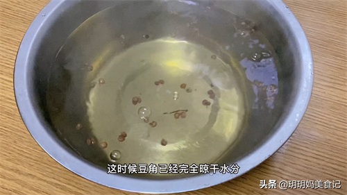 6,豆角颜色变深,闻起来一股子香味就可以了,再就尝一下,香辣脆爽就可以了