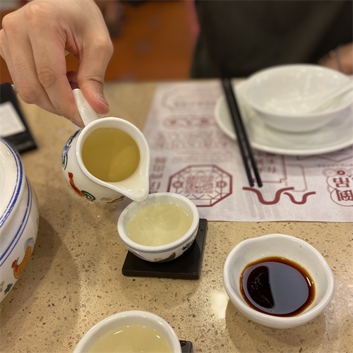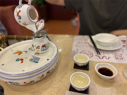 一落座,就有服务员问喝什么茶,我们今天选的是罗汉果茶。之后小哥哥会帮着涮杯,泡茶。罗汉果茶比较甜,喜好甜的朋友们肯定会喜欢。但我不怎么喜欢喝很甜的茶,而且我们之后点的点心也都是甜甜的,所以吃到后面会比较腻。已经想好下次茶还是点铁观音或者普洱好了。散座是8元一个茶位费。