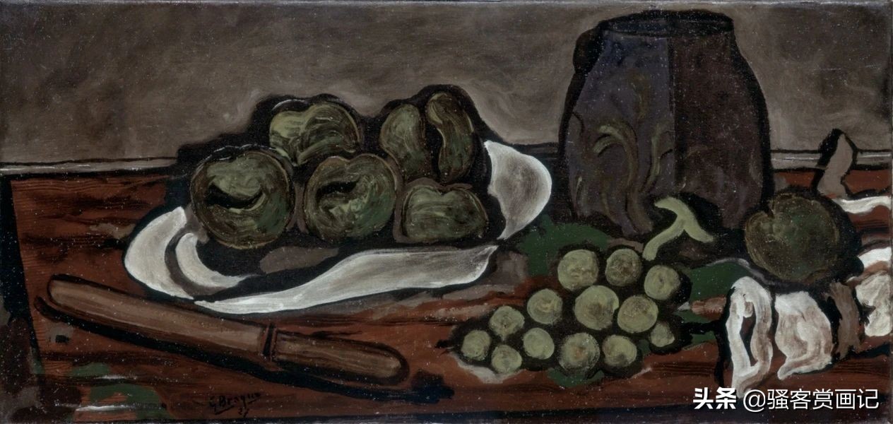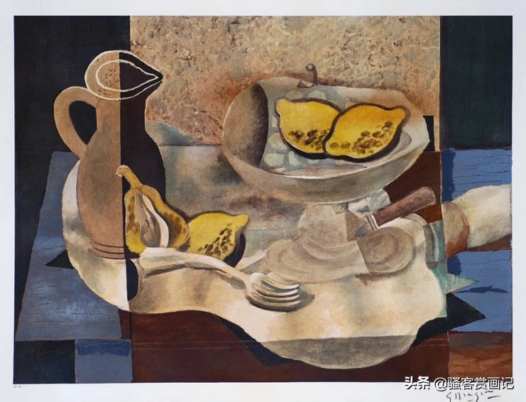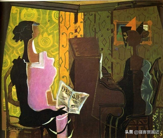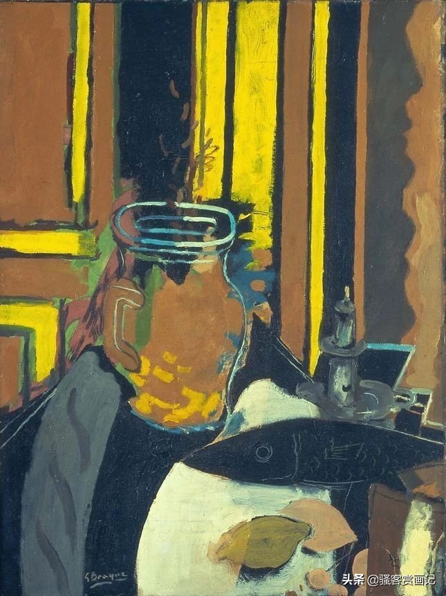在欧陆一战爆发前,布拉克和毕加索都是十分亲密无间的,战争爆发后,布拉克在前线受伤,此后一直处于疗养中,直到1917年才可以作画。也就是在这个时候,布拉克——这位纯粹的色彩形式与线条空间的诗人开始对毕加索的作品大惑不解,他无法理解毕加索那些失控的、充满暴力的画面。自此他虽然与毕加索有联系,但是艺术上的共同处明显开始分化。此后布拉克的绘画语言变得倾向于表达自由和轻松的形式,色彩也变得朴素而又协调,许多作品流露出自然主义的倾向,它们是平静、和谐而优美的,我们无法猜测彼时的布拉克经历了战争的重创后心态发生了何种改变。骚客赏画记猜测,尽管布拉克作为立体主义的创始人之一,立体主义也有形象的颠覆与混乱的趋势,但布拉克追求的是全新的充满秩序与理性的艺术形式。