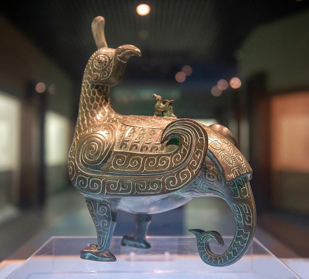晋侯鸟尊作伫立回首的凤鸟形