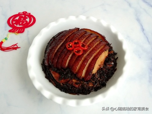 梅菜蒸扣肉的做法:新鲜五花肉洗净,冷水下锅,加入适量姜片、八角、桂皮、香叶,大火煮30分钟。用牙签在肉皮上,扎一些小孔,然后均匀地抹上蜂蜜水,晾干表面的水分。倒入半锅油,油温四五成热时,放入扣肉胚,立马盖上锅盖,中火炸4分钟,锅里没有响声时,开盖翻一面继续炸1分钟,捞出放入冷水中,浸泡3个小时。把扣肉胚切成片,加入适量盐、生抽、蚝油、红烧酱油、蒸鱼豉油、黄酒、白糖、十三香拌匀,腌制10分钟。梅干菜洗净,挤干水分,放入油锅里炒香备用。碗里摆入扣肉,放入梅干菜压紧,放入锅里,大火蒸1个小时,再倒扣过来即可。