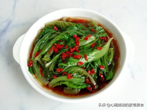 蚝油生菜的做法:碗里加入适量盐、白糖、生抽、蚝油、生粉、清水,搅拌均匀,调成料汁。红辣椒去蒂去籽,洗净切成小粒。生菜洗净,放入开水锅中,倒入适量花生油,焯水10秒,用漏勺捞出装盘。热锅倒油,放入红辣椒爆香,倒入料汁煮开,淋在生菜上即可。
