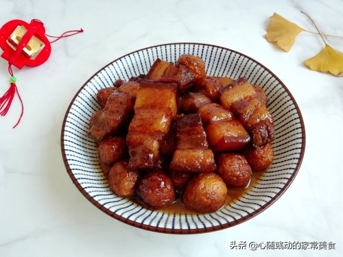 元宝红烧肉的做法:五花肉洗净,切成大块,冷水下锅,焯水10分钟,撇去浮沫,捞出沥干水分。鹌鹑蛋洗净,下锅煮熟,捞起过凉,去壳后洗净,沥干水分。热锅倒油,放入鹌鹑蛋中火煎至表面金黄,盛出。锅留底油,加入一把单晶冰糖,小火炒出糖色,放入五花肉快速翻炒均匀,加入适量姜片、八角、桂皮、香叶、干辣椒、草果、生抽、蚝油、红烧酱油、料酒炒匀,倒入适量热开水,小火炖40分钟,再放入虎皮鹌鹑蛋,继续炖10分钟,加入适量盐炒匀,大火收干汤汁即可。