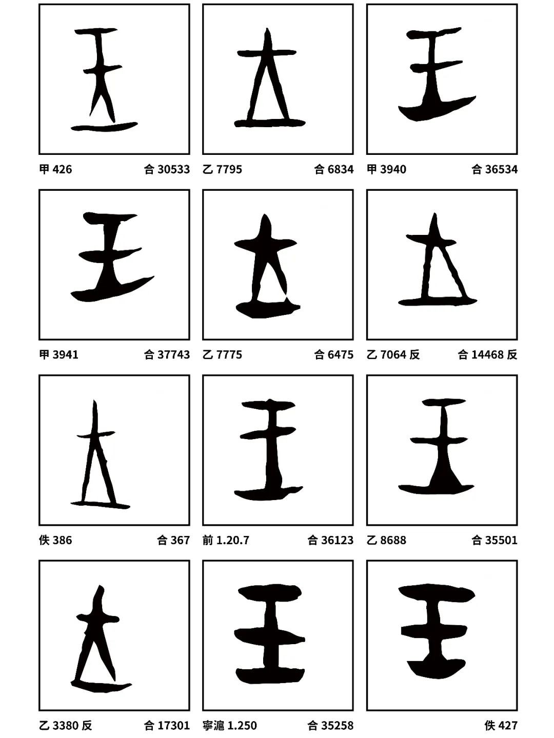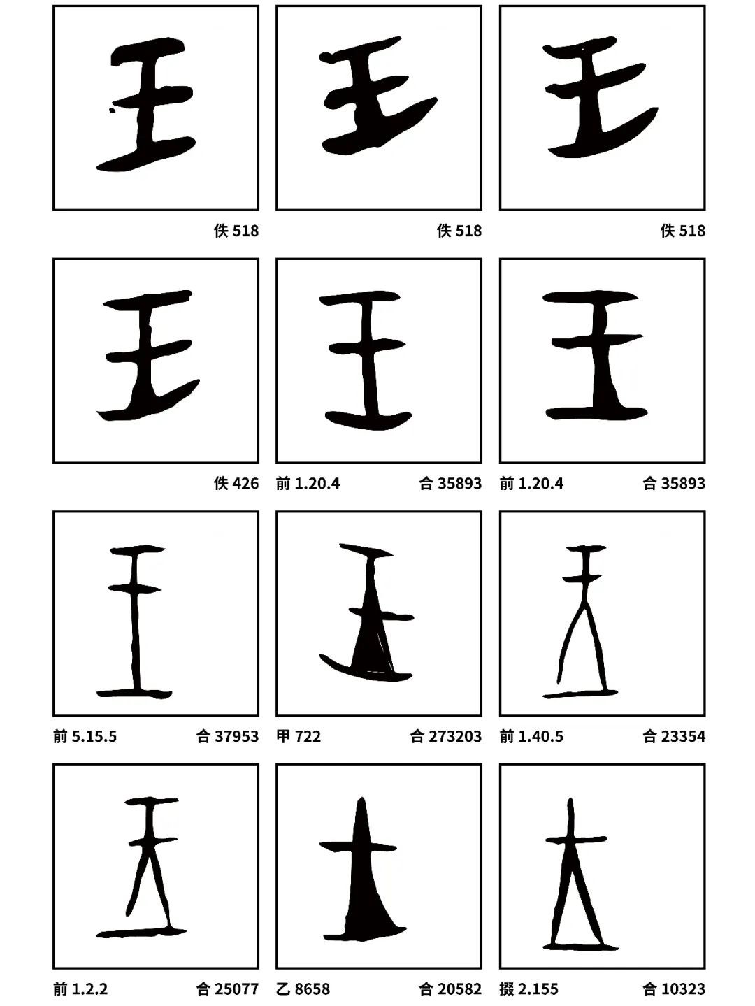 “王”字现可查询的甲骨文