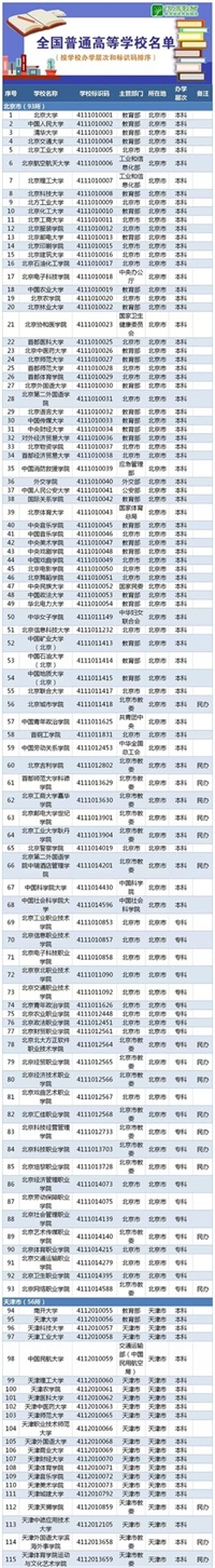 @高考考生,教育部发布2019全国高校名单