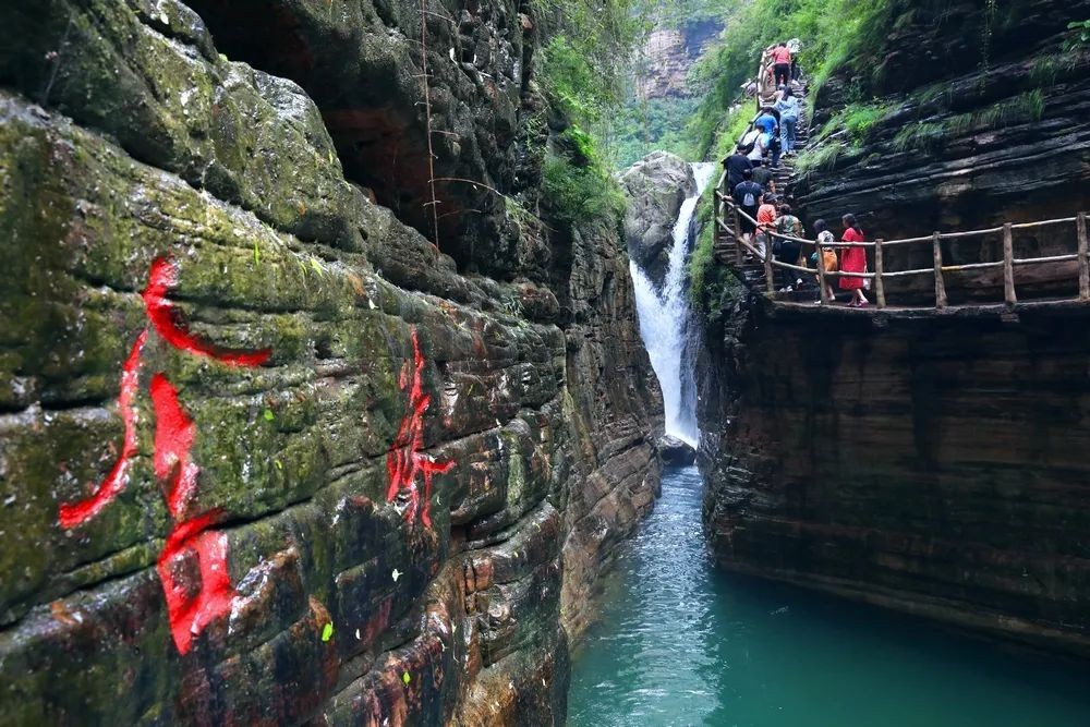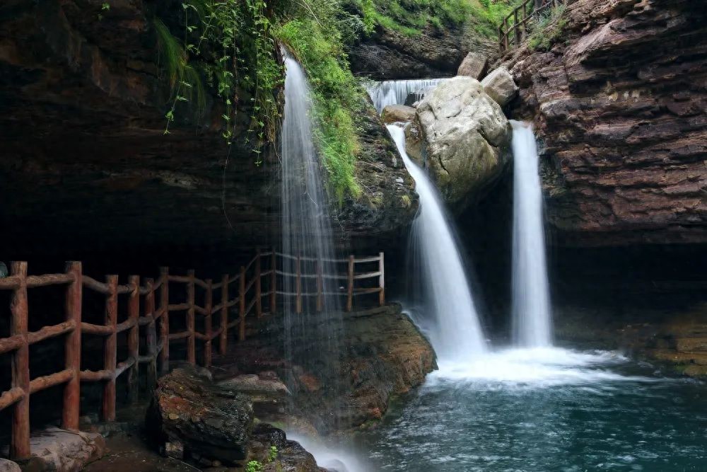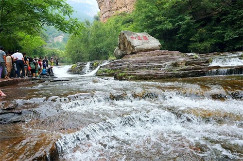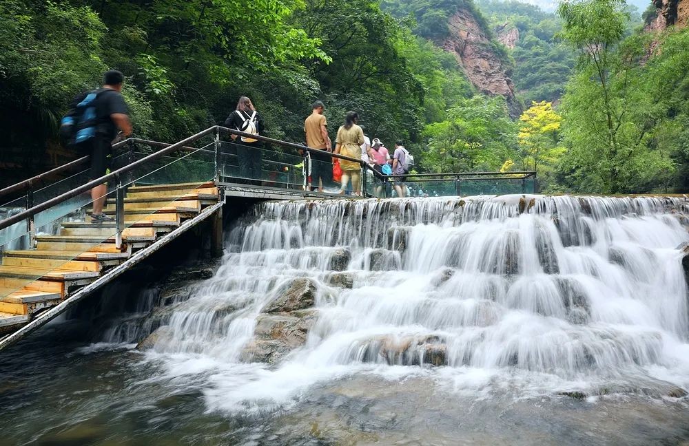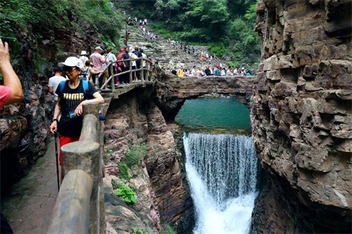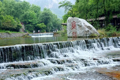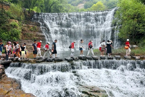 这里有九连瀑、二龙戏珠、含珠流泉等著名观景地,大大小小的碧潭与银色瀑布相连,高差近千米,谷内草木茂盛,“三步一泉,五步一瀑,十步一潭“的步随景移的美景,水流沿石级层层流下,泛起粼粼的水光,水中垂柳依依,碧波荡漾,好像从雄伟的太行山一步迈入了俏丽的江南。