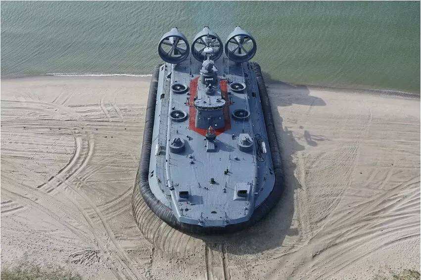 于是,苏联在1978年开始着手研制适合上述作战任务的大型气垫登陆舰船,任务代号Project 12322,由位于圣彼得堡的阿尔马兹船厂设计建造,计划建造13艘,首舰于1983年开工,1988年进入波罗的海舰队服役。当时还向位于乌克兰的克里米亚半岛的大海造船厂转让了相关技术,建造其中的6艘。这就是世界上最大的12322型气垫登陆舰,北约代号,欧洲野牛,也叫贼鸥级。