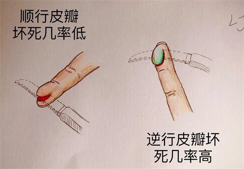 根据切法不同会造成顺行和逆行两种损伤,一般顺行皮瓣损伤直接缝合即可。逆行皮瓣有较大缺血坏死风险,可能需要行植皮手术。