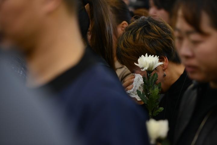前来追悼的人们或泪眼朦胧,或低声啜泣,向颜曰春烈士鞠躬送别。他们中有颜曰春生前的领导同事、亲朋好友,还有很多曾经接受过颜曰春帮助的群众,都自发前来送颜曰春烈士最后一程。