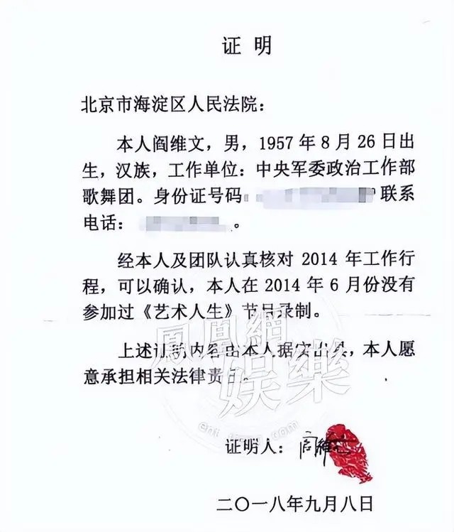 其次,弦子说她被救的是因为主持人阎维文推门而入。但阎维文本人已经澄清那天他根本不在现场。