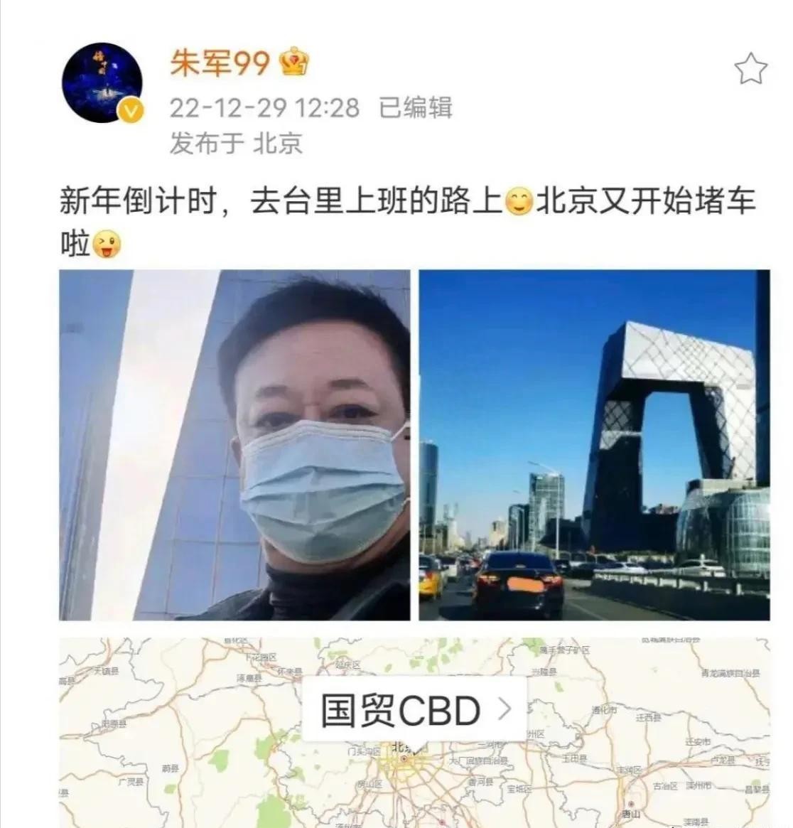 12月19日,朱军在社交媒体上晒出自己回到央视大楼的合影,意义重大。