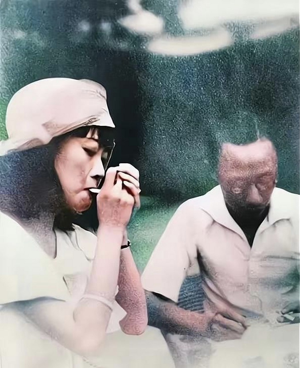 据说她是在天津开始吸鸦片烟的。