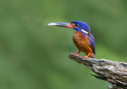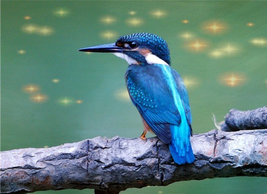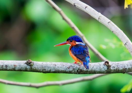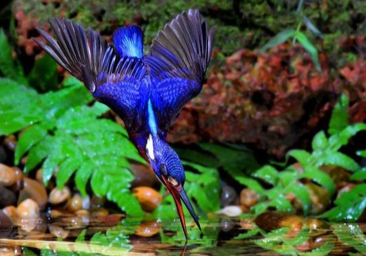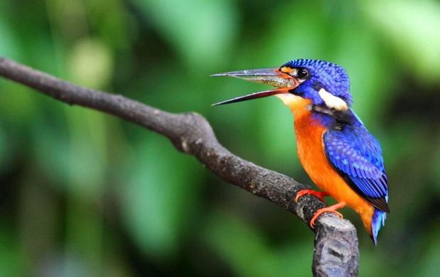 蓝耳翠鸟生活于溪流、湖泊,头顶和颈黑色,具蓝紫色横斑