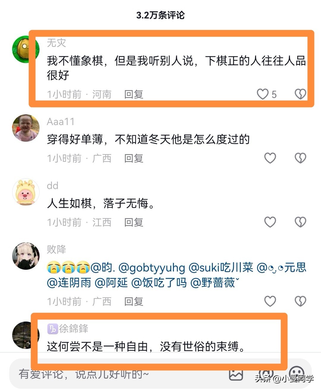 我想说他用一颗赤子之心,去感受棋盘上的每一个变化,去体验人生中的每一次起伏。他的世界,就在那一方棋盘之上,而他的心,却早已缥缈于天地之间。