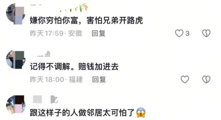 有网友建议他“不要接受修理费,而是让邻居赔偿新车”,认为“新车被砸坏,修过的车就变成旧车了,车主太冤了”。
