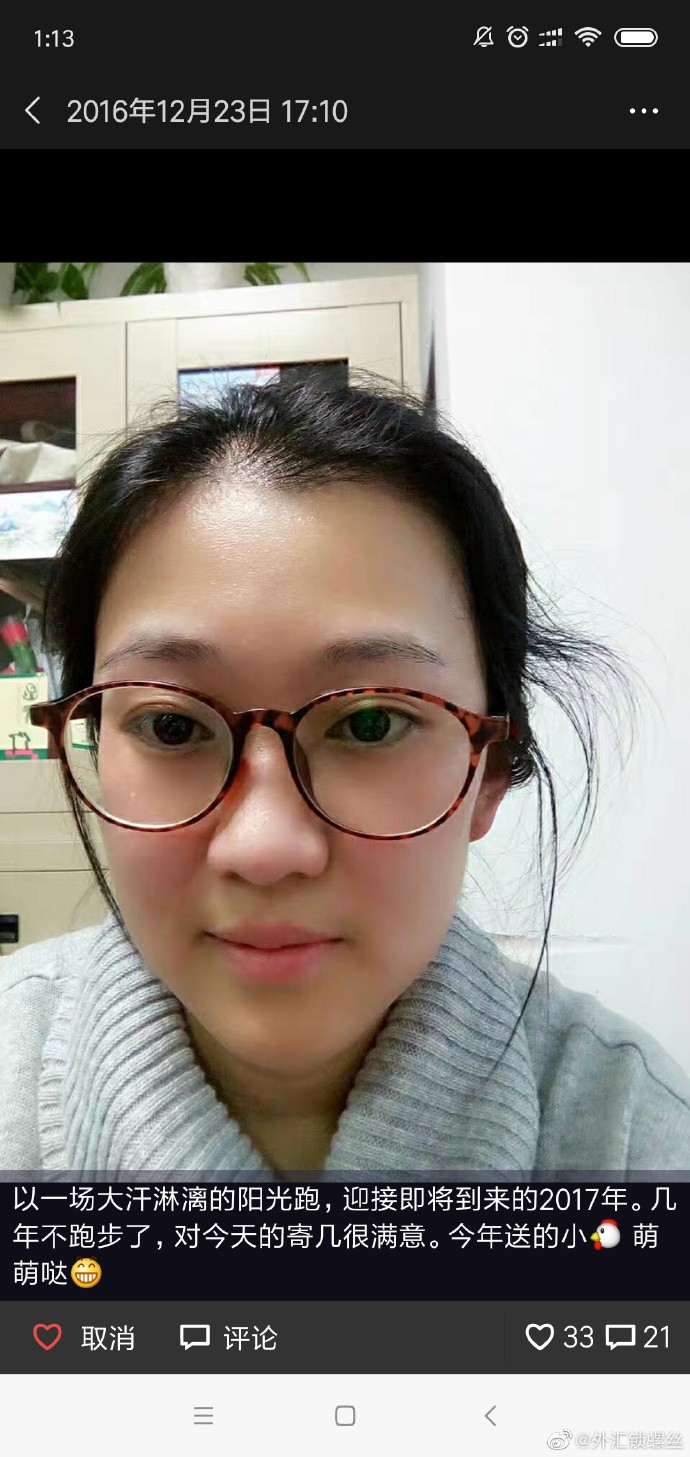 检查出疾病之前,2016年12月23日,闫宏微有张刚运动完的照片,她长发束起,面色红润,肌肤柔嫩,看起来比33岁的一般女性更年轻漂亮有活力,她戴着大框眼镜,穿一件蓝灰色翻领毛衫,这是位清新、秀气、活力满满的年轻妈妈,一位前途无量的高校青年教师。她对即将到来的2017年充满期待。