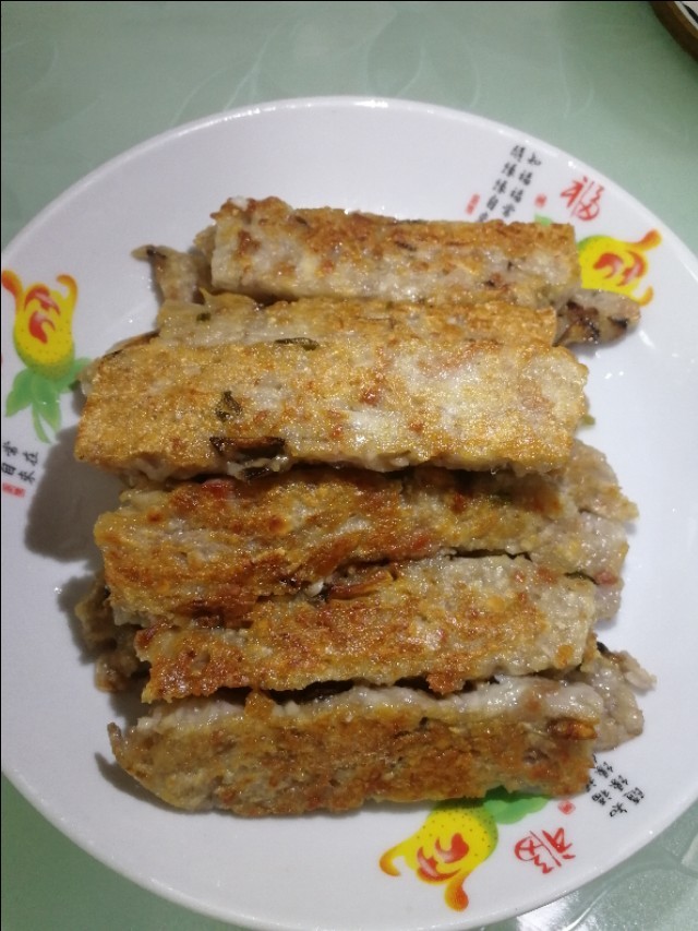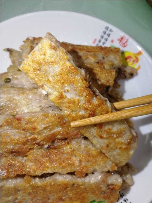 取出晾凉后,把芋头糕切片,锅内热油,,小火放入煎至两面金黄就可以开吃了