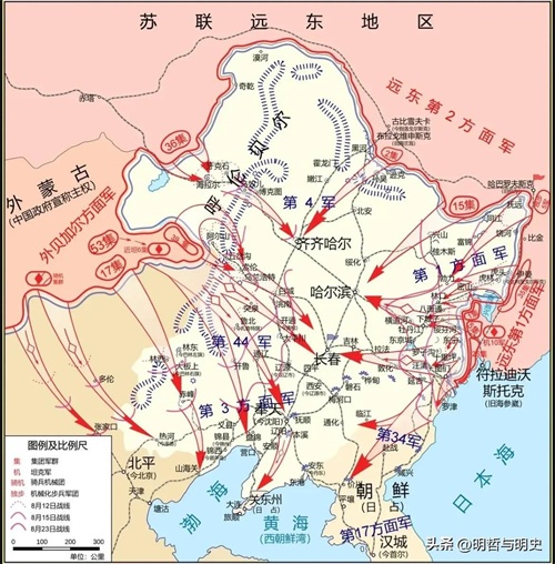 在1945年欧洲战场的战争结束之后,苏军开始准备对日本方面的战争,到了7月份苏军在远东地区的部署基本完成,苏军“八月风暴”行动一共有三个方面军,十八个集团军,一个海军舰队参战,共计有33个军级单位,总兵力达到了174万人。而日本关东军即使是加上各种警察部队和伪军,总人数也凑不够100万人,没办法,日军只能就地征召了20万日本侨民,凑够了百万大军。