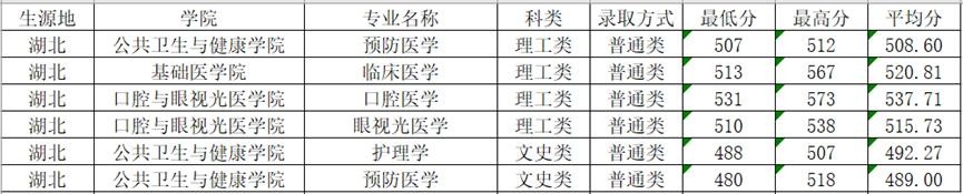 湖北科技学院2023年省内临床医学最低分513分,口腔医学最低分531分,眼视光医学最低分510分,预防医学文理均招。