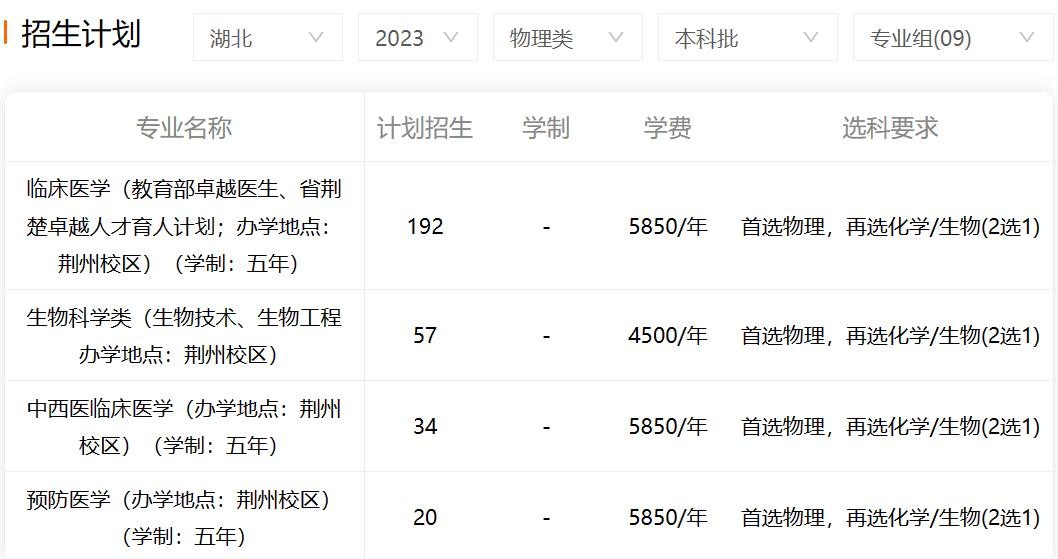 以上7所院校都公布了2023年的专业录取分数线,还有长江大学、湖北医药学院、武汉科技大学、湖北民族大学等学校没有公布专业录取分数线。长江大学的医学相关专业在09专业组,08专业组包括医学技术类。