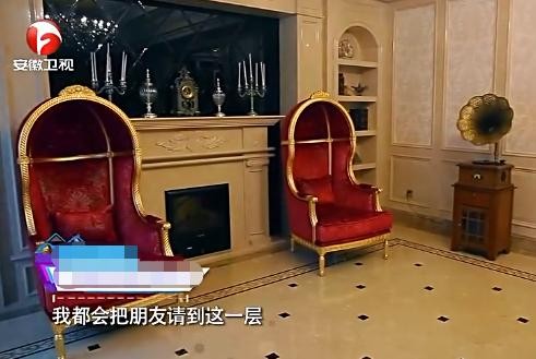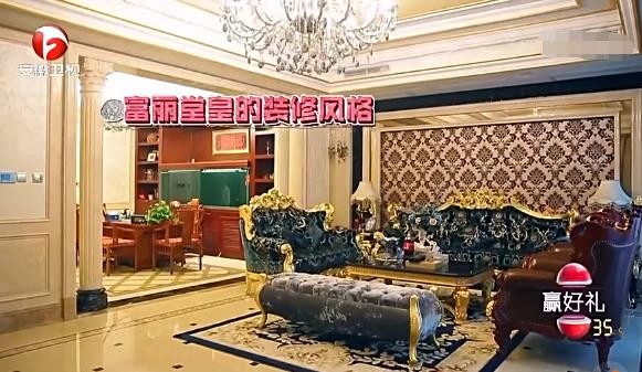 曹云金身后的欧式沙发看着非常奢侈,上面还镶金,墙上的花纹也和沙发纹路相互呼应,这个装修一看就是用了心的。