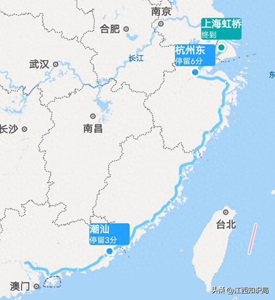 列车从潮汕站至杭州东站,竟然直接跨过了厦门北、福州、宁波等站。