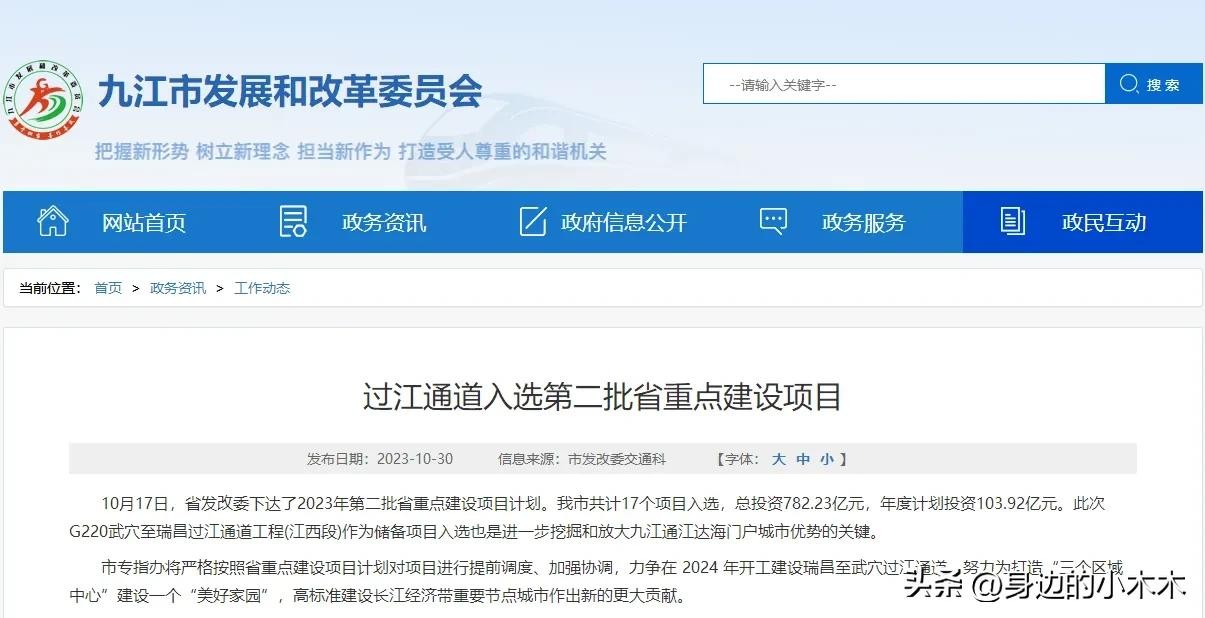 近日,江西省发展改革委发布了130个示范引领性项目清单。其中包括公路G220武穴至瑞昌过江通道工程,预示着九江瑞昌码头至湖北武穴的跨江大桥即将开工建设。