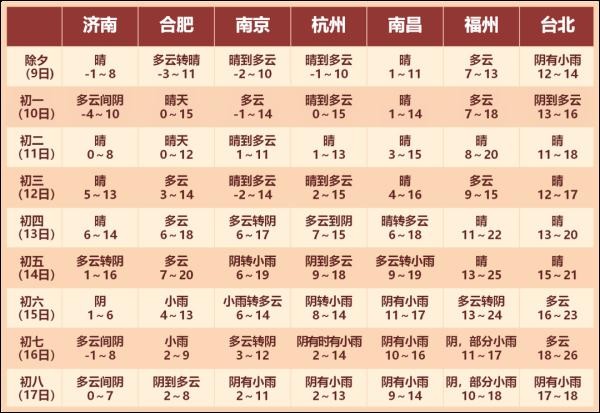 华东主要城市春节假期天气