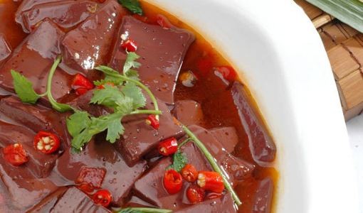 土家特色菜之一。血豆腐以豆腐、猪血、猪肉为主料,加入花椒、辣椒等佐料搅拌成泥,然后捏成小块放在火炕烤至腊黄,吃起来鲜香有嚼劲。