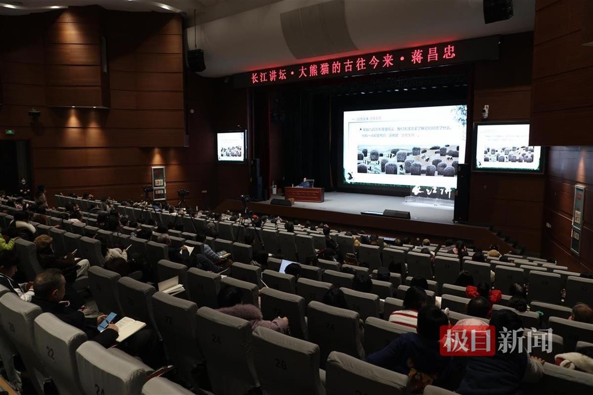 当日长江讲坛的现场,气氛热烈非凡,座无虚席。不少家长带着孩子来,小朋友们眼中闪烁着好奇与期待。当蒋昌忠展示憨态可掬的大熊猫相关内容时,现场观众纷纷举起手机,记录下这些可爱瞬间。