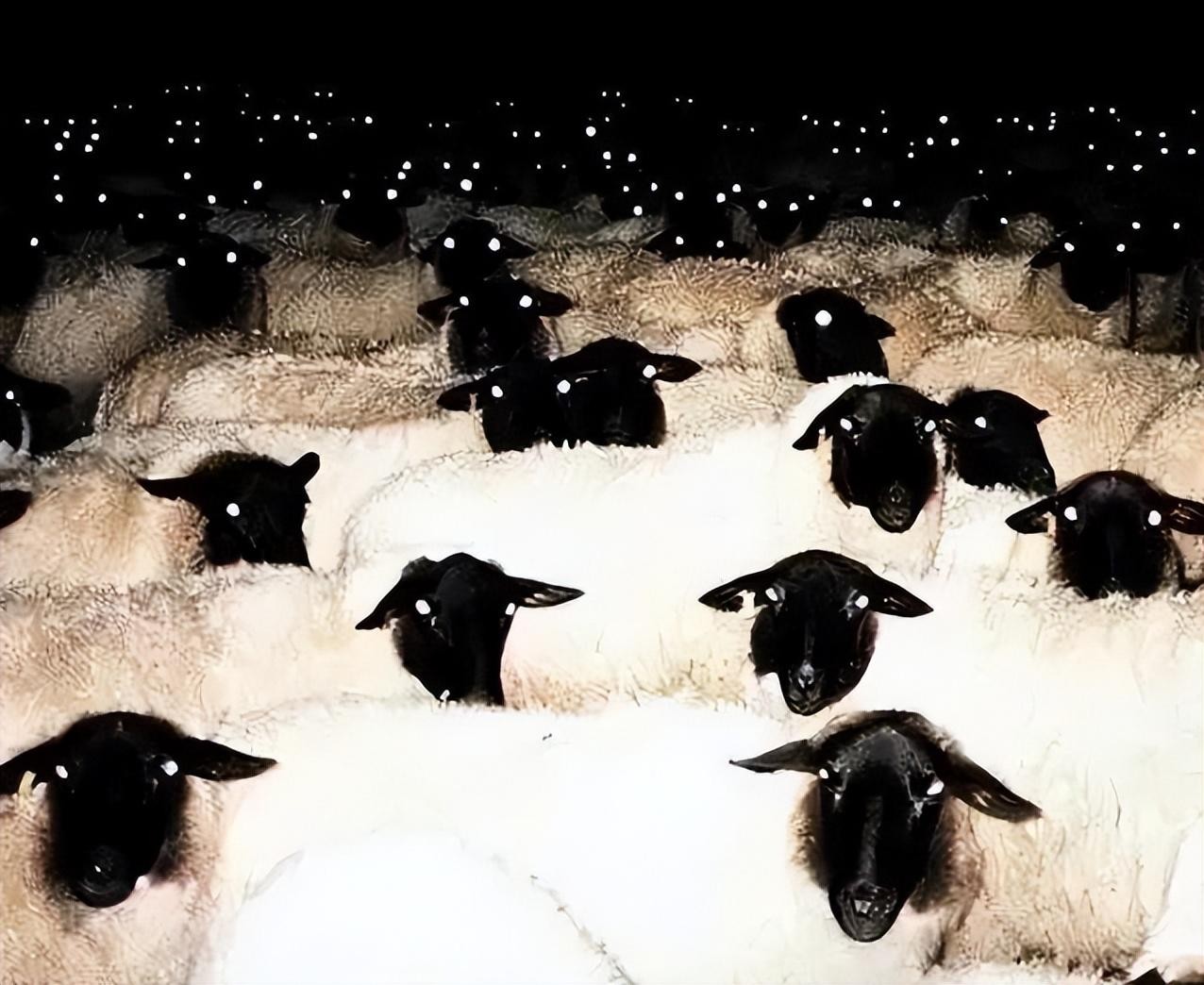 02.晚上的羊群,黑色的脑袋和发光的眼睛,画面诡异至极