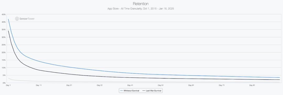 然而,《Last War》在留存率方面落后于《无尽冬日》。