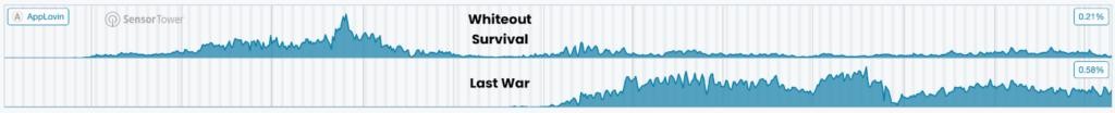 (《无尽冬日》与《Last War》在AppLovin上的声量趋势对比)