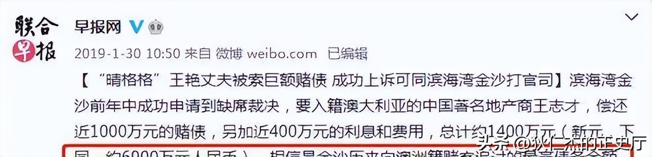 毕竟“晴格格”王艳的老公可是王志才,一个有名的地产商,如今竟然会欠了赌场一千多万的赌债。