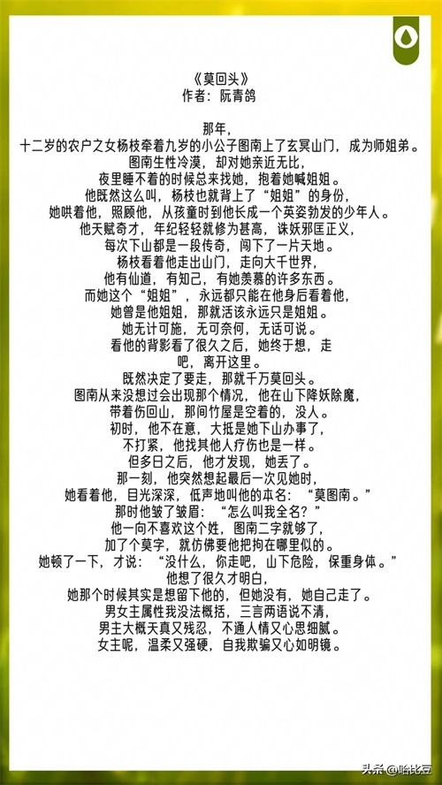 《莫回头》作者:阮青鸽 73章 一句话简介:古早味仙侠虐文。 立意:做让自己开心的事情,爱一个人让自己开心,那就爱,如果不能让自己开心了,那就走。