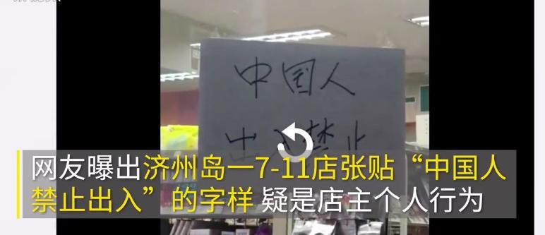 韩国济州岛一7-11便利店挂出“中国人禁止出入”标语