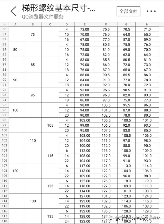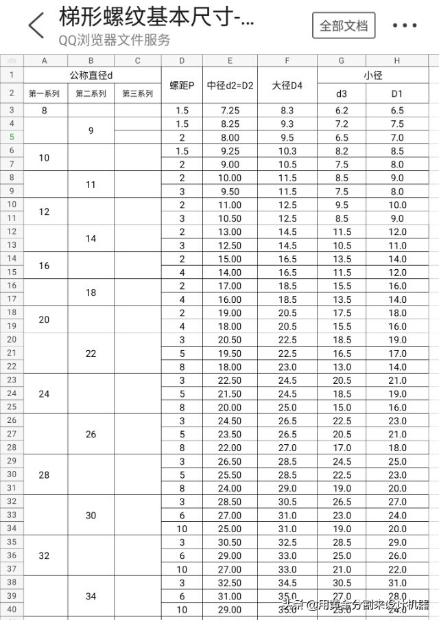 机械设计资料‖4五金标准件‖4-1.1-梯形螺纹标准尺寸